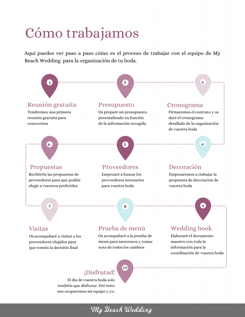 - Llegar al gran día relajados y sin estrés para poder disfrutar al máximo de vuestra boda en la playa.